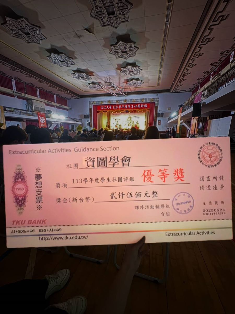 恭喜資圖系學會榮獲113學年度學生社團評鑑優等獎