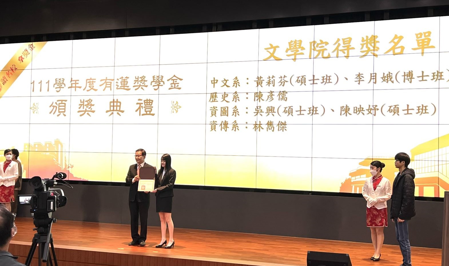 恭喜111學年度資圖系3位同學榮獲有蓮獎學金